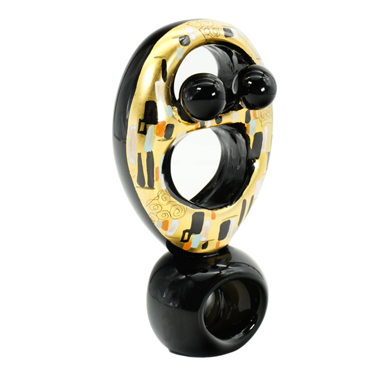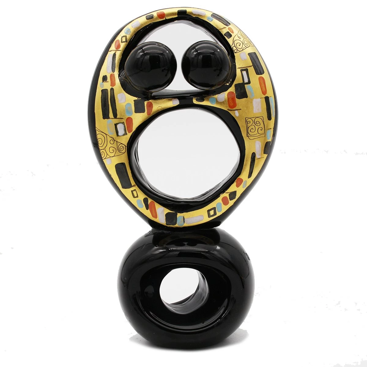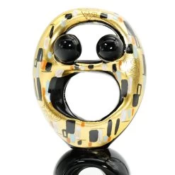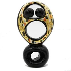 Abstract Hug sculpture handmade with the technique of warm glass modellation. The surface is hand paitned and engraved with gold leaf with Klimt design. Handmade for our selection of lovers sculptures.Â