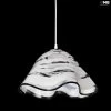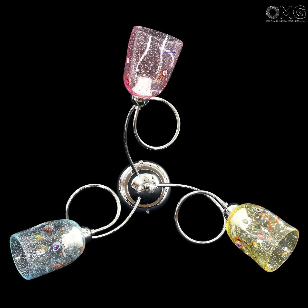 Murano glass chandelier handmade in blown glass, 3 lights, with cups in artistic glass with murrine, chromium frame, canes and silver.