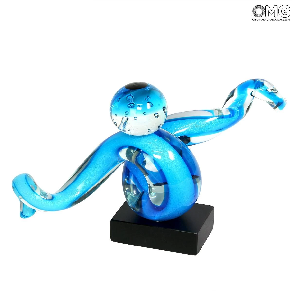 Abstract sculpture inspired by the fantasy of the glass master. Bright blue colors make it perfect for your modern home furniture. Artwork in Original Murano Glass OMG® hand-made according to the ancient tradition of Venetian glass.