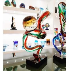 Abstract sculpture inspired by the fantasy of the glass master. Bright colors and great dimensions make it perfect for your modern home furniture. Artwork in Original Murano Glass OMG® hand-made according to the ancient tradition of Venetian glass.