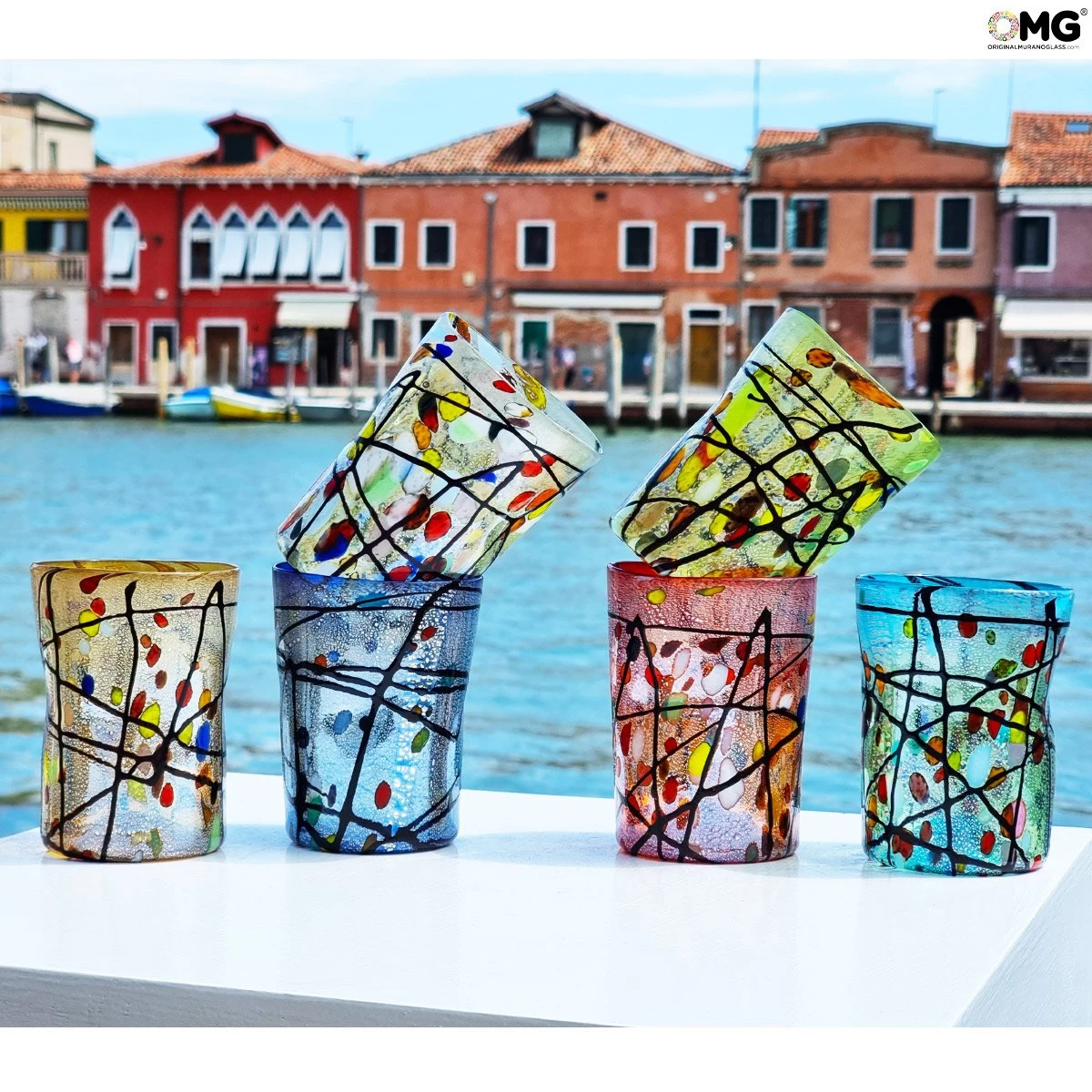 Kandinsky Glasses Set – Tumblers With Pure Silver – Original Murano Glass