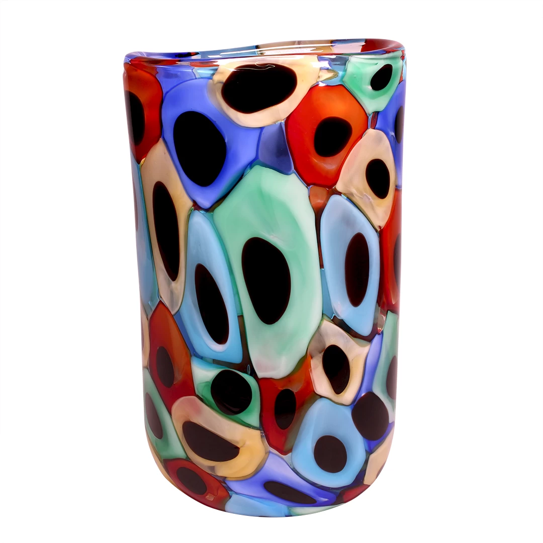The particular wavy texture and the alternation of colors were carried out by the master glassmaker in a masterly way to create a work of art of easy appreciation but of great scenic impact, ideal for embellishing any environment.