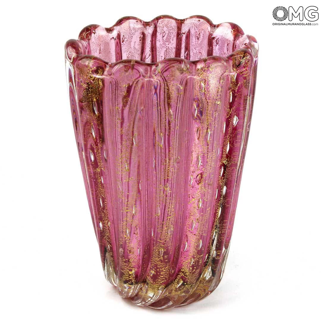 Luxury handmade vase with the famouse blowing technique, realized in Murano Glass with real gold leaf.