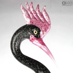 Sinuous sculpture of heron in black and white on clear base, made in solid glass with the glass working techniques in Murano. This lovely sculpture, extremelly elegant, is the perfect artwork for a luxury shelf or to complete your rich furniture. You can put it under the light of a lamp, on the table or near a plant. Wherever you locate it, this elegant sculpture will gift you all its charm.