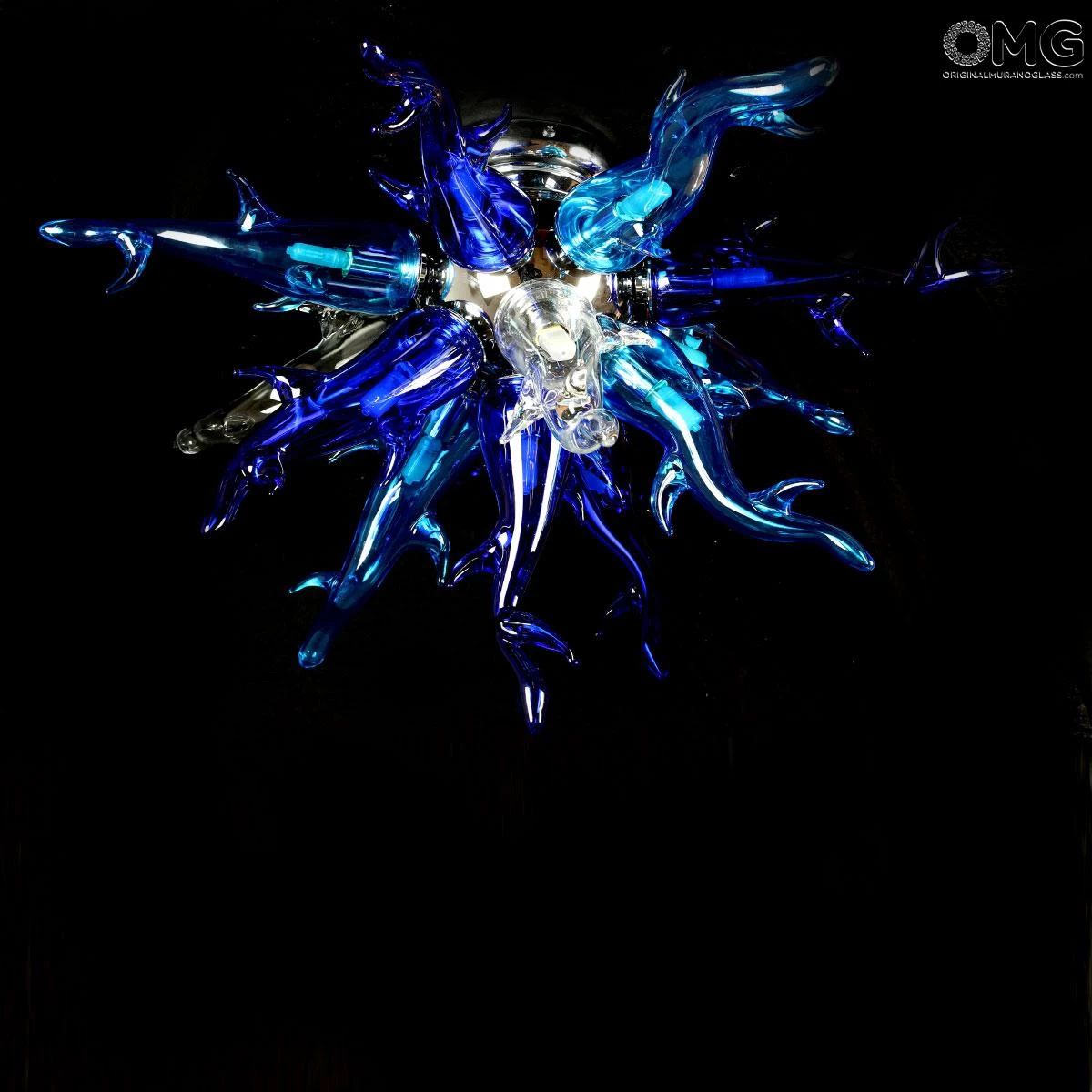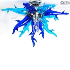 Beautiful original Murano glass lamp made by assembling the blown pipes one by one on a central chromed structure.