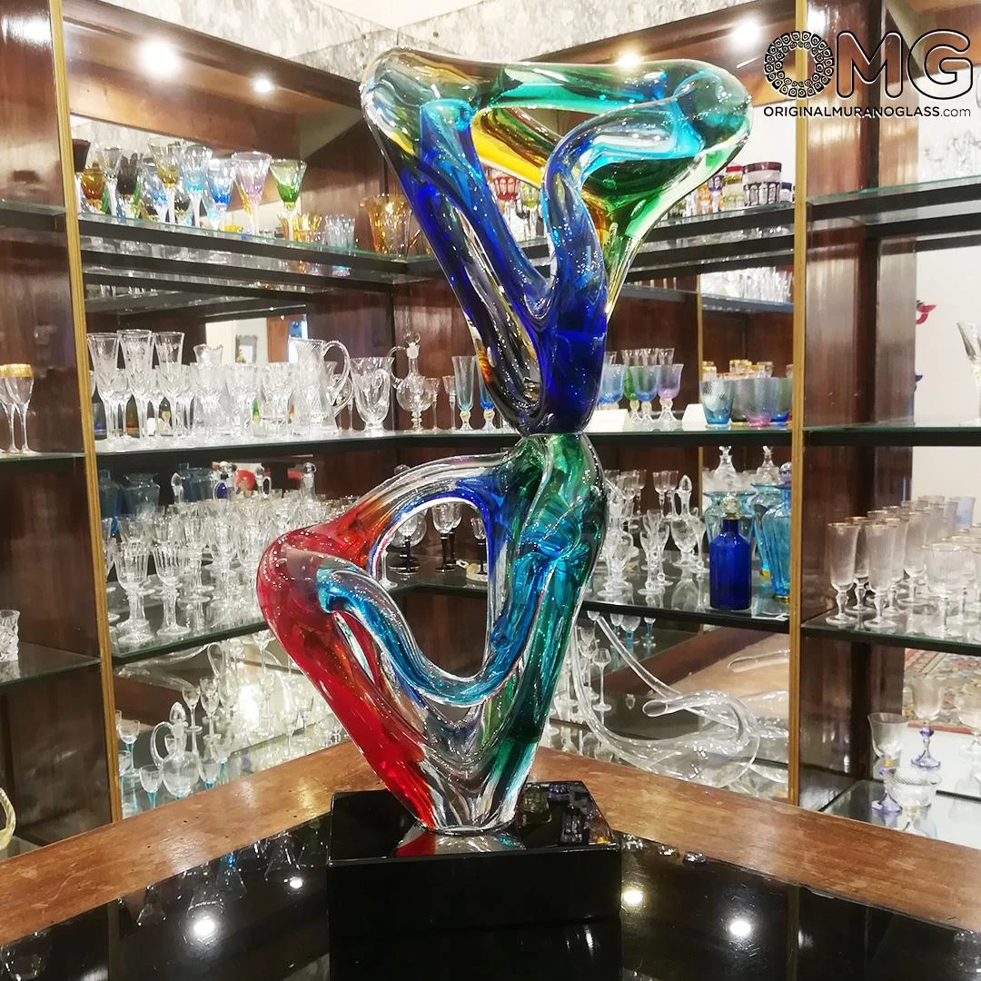 Abstract venetian glass Sculpture that represents a a fantastic and mysterious creature. Bright colors and great dimensions make it perfect for your modern home embellishment. Artwork in Original Murano Glass OMG® hand-made according to the ancient tradition of Venetian glass.