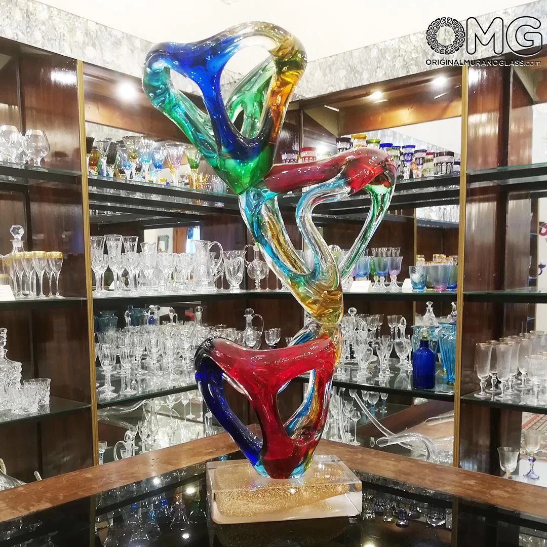 Abstract venetian glass Sculpture that represents a a fantastic and mysterious creature. Bright colors and great dimensions make it perfect for your modern home embellishment. Artwork in Original Murano Glass OMG® hand-made according to the ancient tradition of Venetian glass.