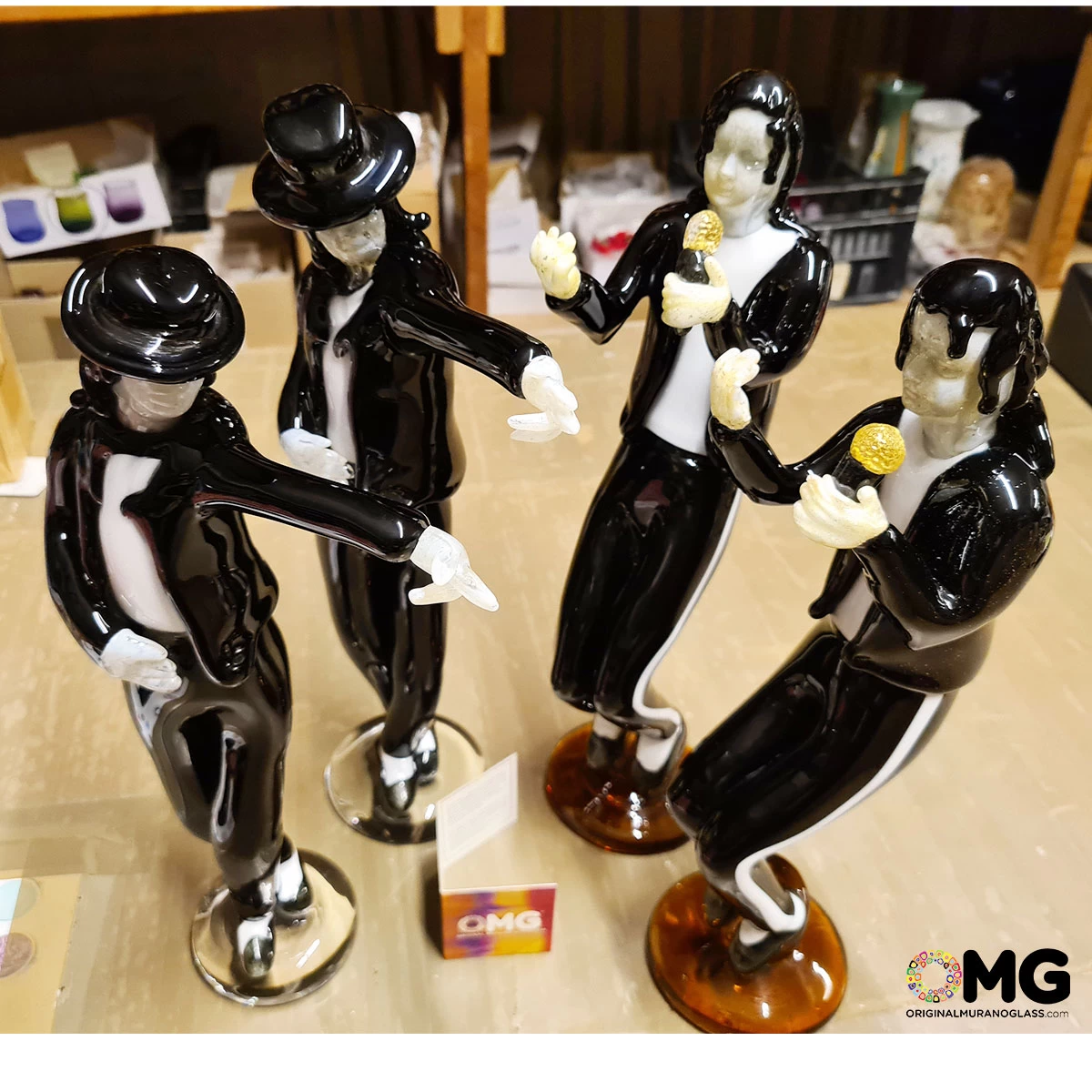 Michael Jackson tribute sculpture in original Murano glass. The figurine is made freehand with the glass hot modeling technique. Opera for fans of the famous artist MJ. Signed by the master and with certificate of originality, unique object made on commission.