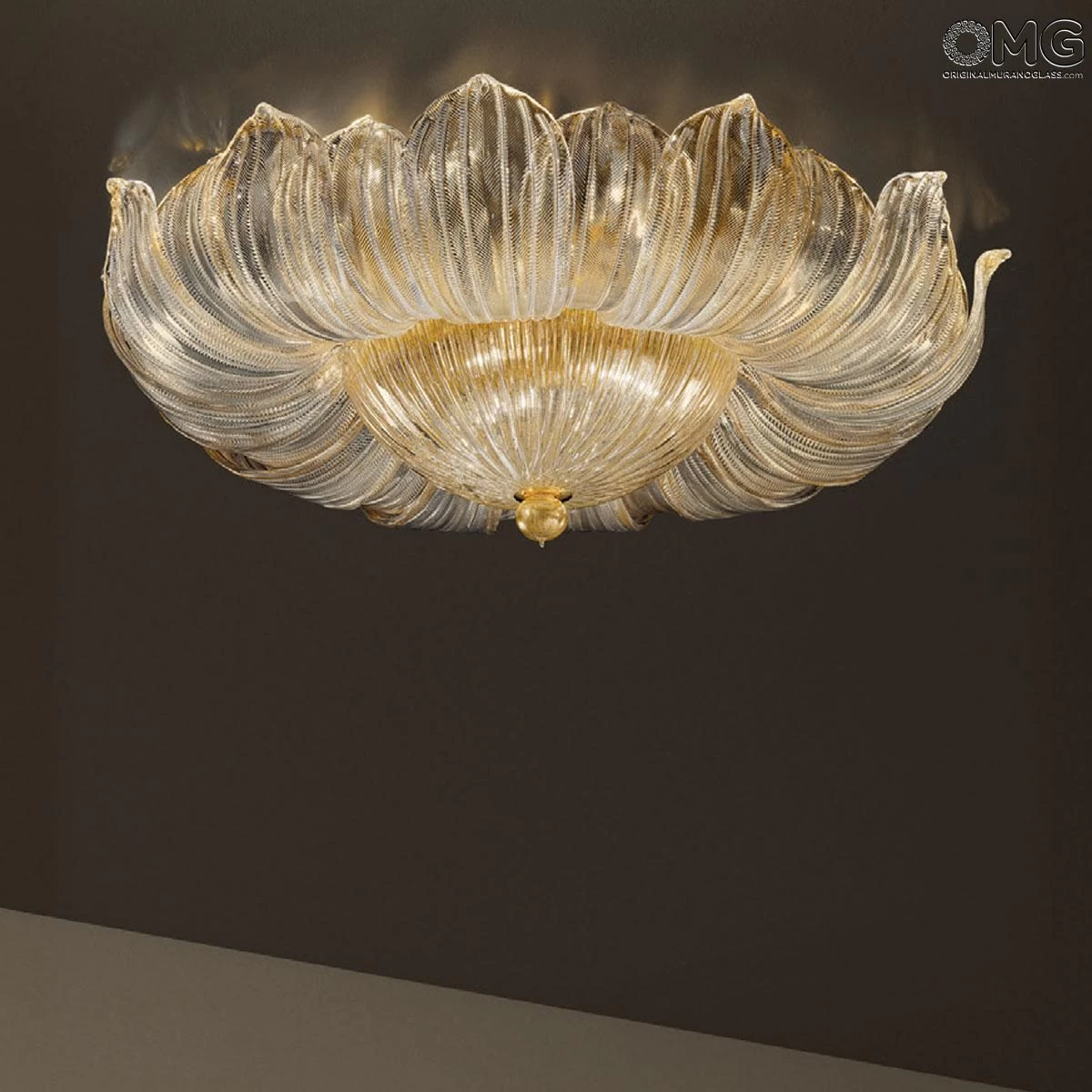 A ceiling lamp that is able not only to light when turned on but also to decorate when turned off, leaving the observer enchanted.