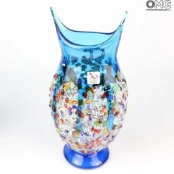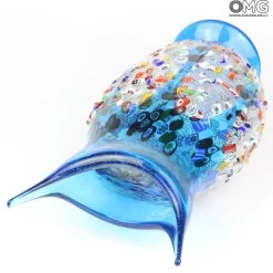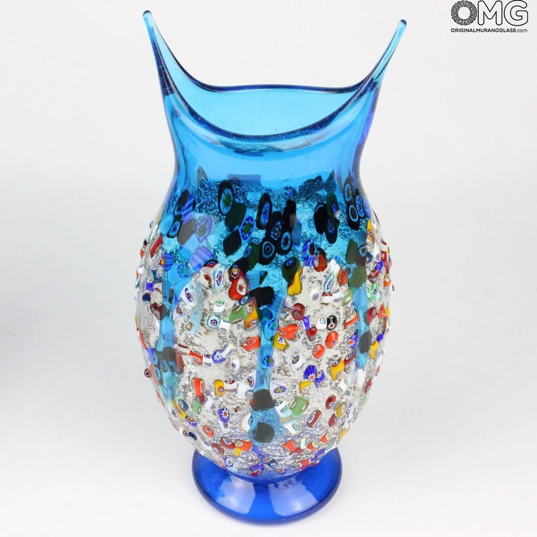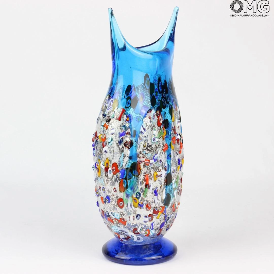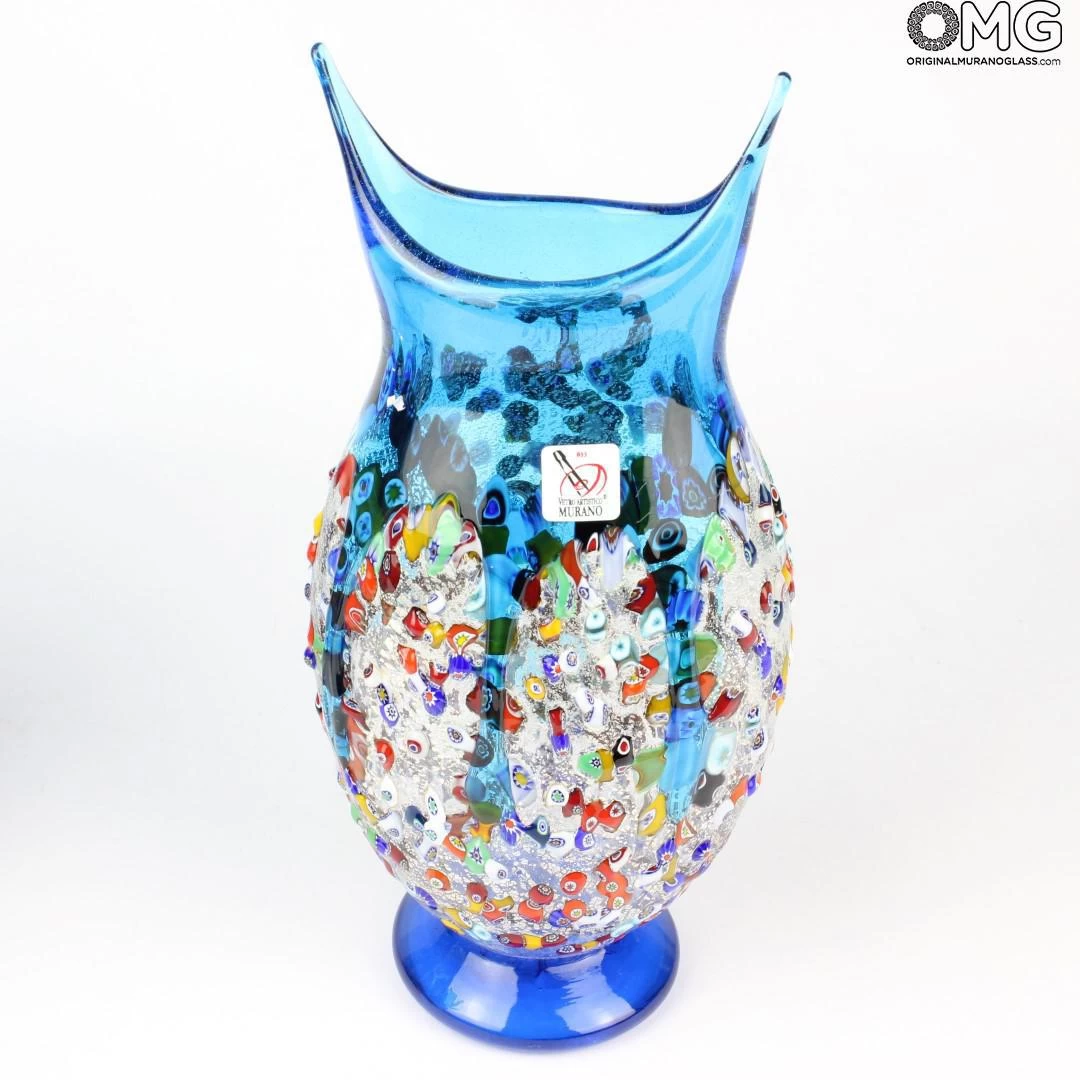 Vase handmade with glass-blowing technique in silver and murrina milelfiori decoration. The artwork is signed by the glass master and with Vetro Artistico® Murano trademark applied.