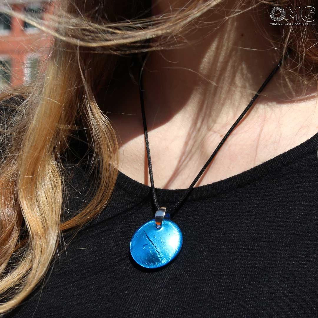 Pendant handmade in Murano glass with the technique of submerged glass over a silver leaf who make this pendant simple and easy to dress but unique in style.