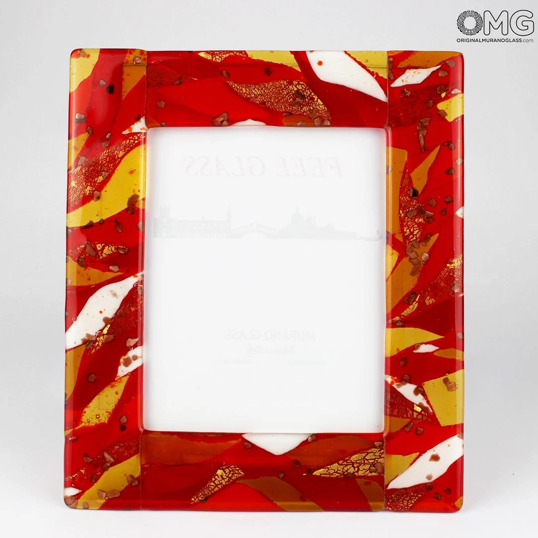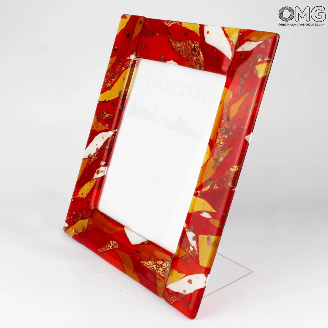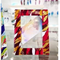 Photo frame made with glass fucing technique. A frame with an elegant texture embellished with real 24kt gold leaf.