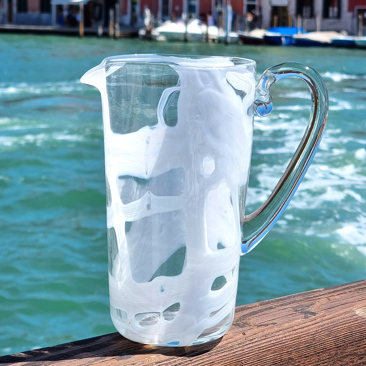 The jug holds 1,5 litre and it can be made in the color you prefer (write it in the cart’s note while purchasing the set and our glass master will make it as you wish).Â