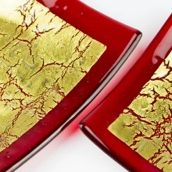 Plate made with the tecnique of glass fusing, embellished by a precious real gold leaf 24kt. The plate come in different size, the small one can be used as empty pockets, the bigger as centerpiece..