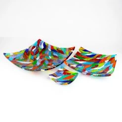 Plate made with the tecnique of glass fusing, embellished by a multicolor texture. The plate come in different size, the small one can be used as empty pockets or wedding favour, the bigger as centerpiece.