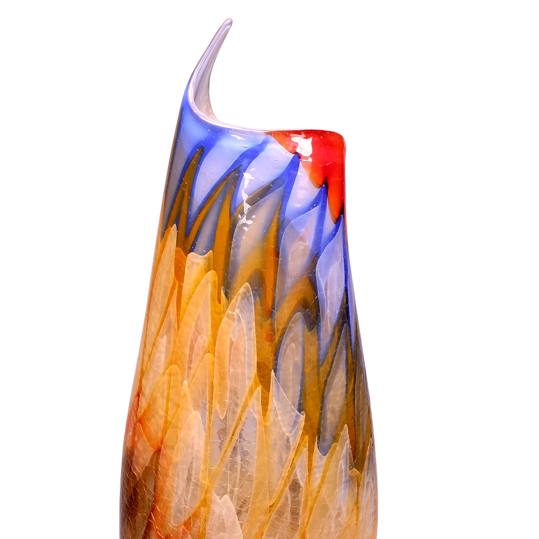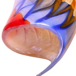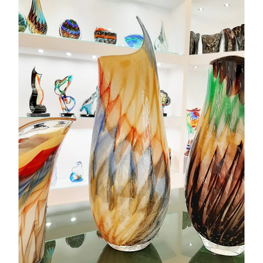 The particular wavy texture and the alternation of colors were carried out by the master glassmaker in a masterly way to create a work of art of easy appreciation but of great scenic impact, ideal for embellishing any environment.