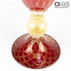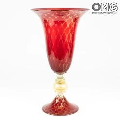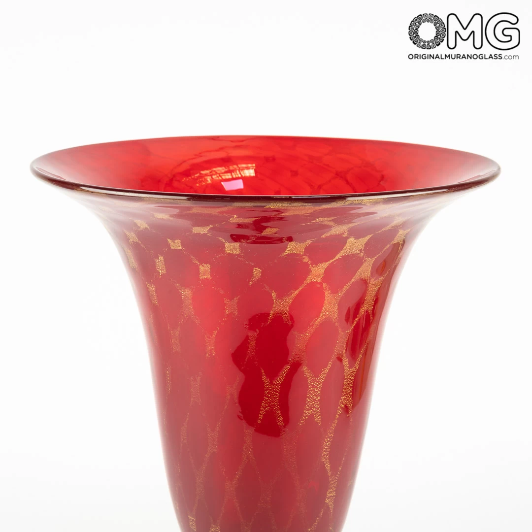 Vase of classic and elegant shape, with real gold leaf. Red colored vase centerpiece of noble facture, handmade in Murano. No stamp or model used, only worked by hand.