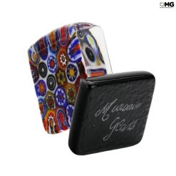 Exclusive glass artwork handmade with technique of fused glass. Handamde with Murrina; the base is in black glass. Impress your beloved with a unique piece of art handmade in Venice Italy, great gift idea to say I LOVE YOU, It is possibile to engraved it with your sentence.