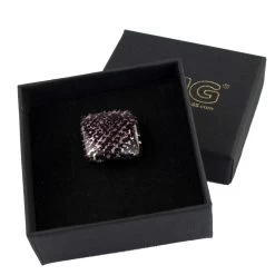 Glass ring made with hot modeling technique and engraved silver leaf. Handmade in Murano glass.