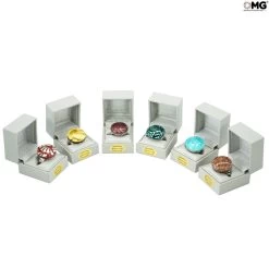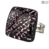 Glass ring made with hot modeling technique and silver leaf. Handmade in Murano glass.