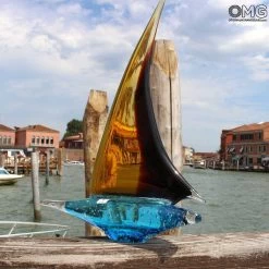 Handmade glass sailboat. Ground and polished by hand.Â