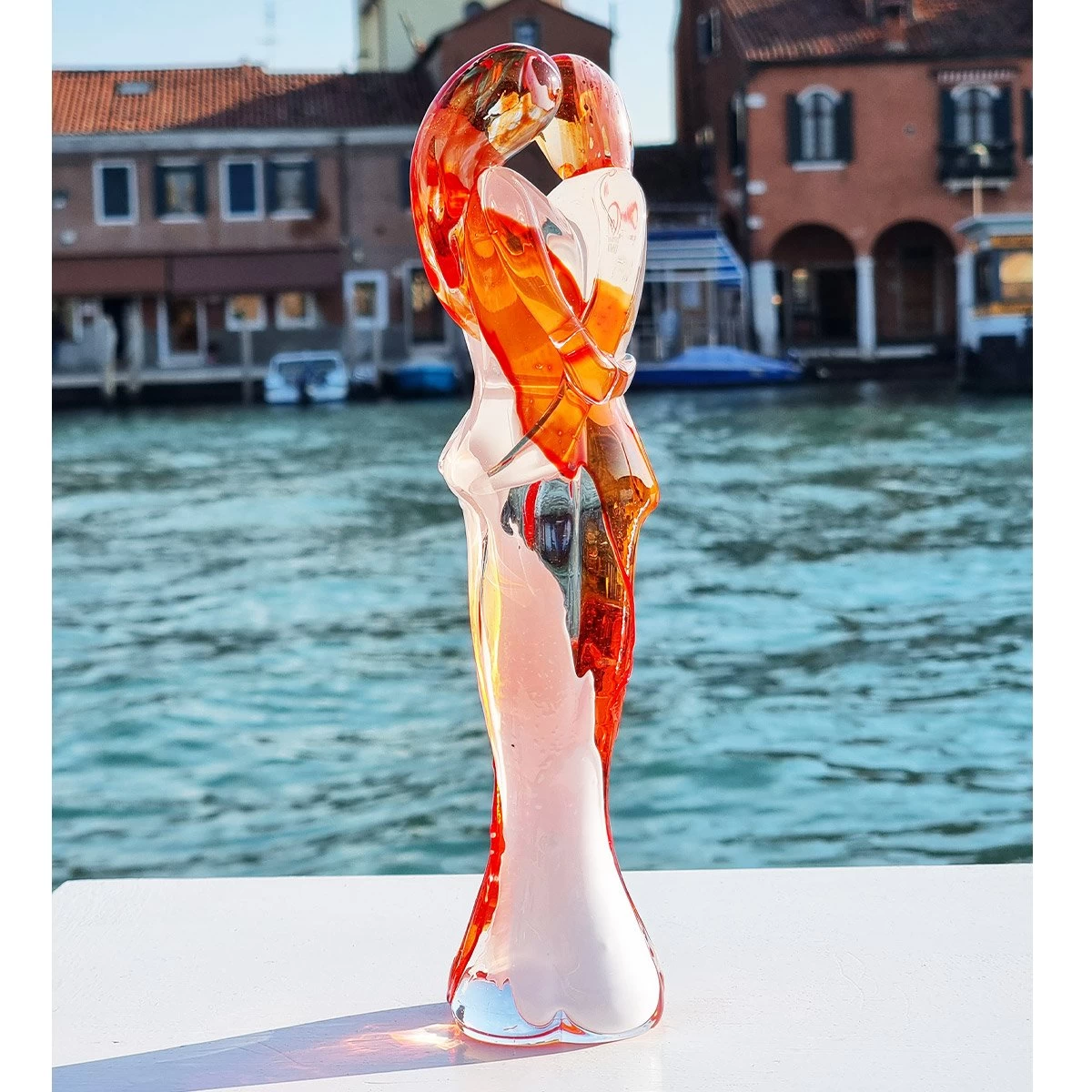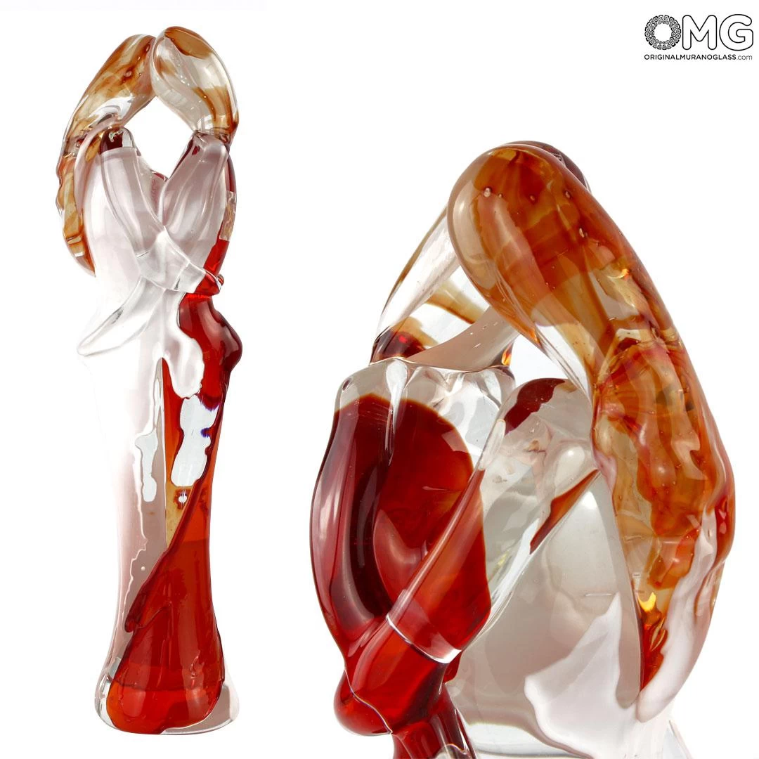 Lovers bust sculpture made with the technique of warm glass modellation. Glass is molten in different colors. Handmade for our selection of lovers sculptures.Â