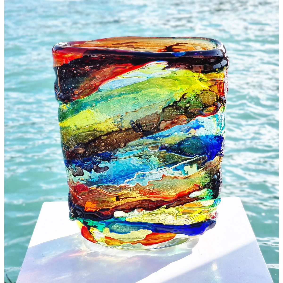 This gorgeous contemporary Murano Glass Vase is an example of abstract art at its best, created by top-notch Venetian masters from a potent mix of passion, talent, and unmatched skill from decades of working hot glass.