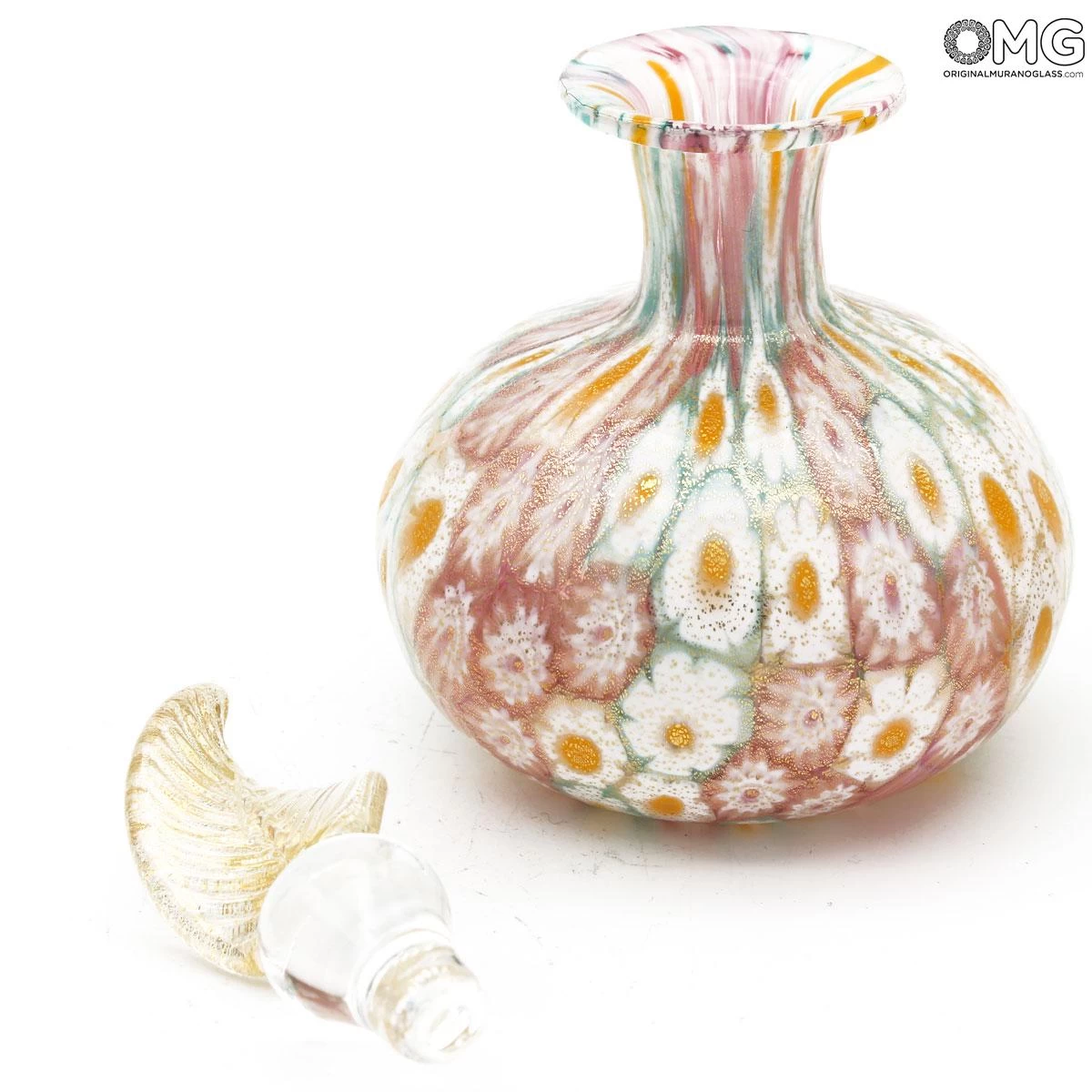 The Venetian bottle was created in ancient world-famous Millefiori technique and is accompanied by the certificate of authenticity. The stopper is included with the piece.Because each piece of Murano Glass is a unique work of art made by hand, slight variations of colors and patterns are possible. Â