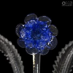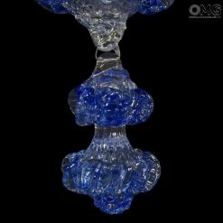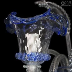 Two lights wall lamp in clear glass and precious cobalt details. It is handmade according to the old Murano glass tradition, handcrafted in blown glass.