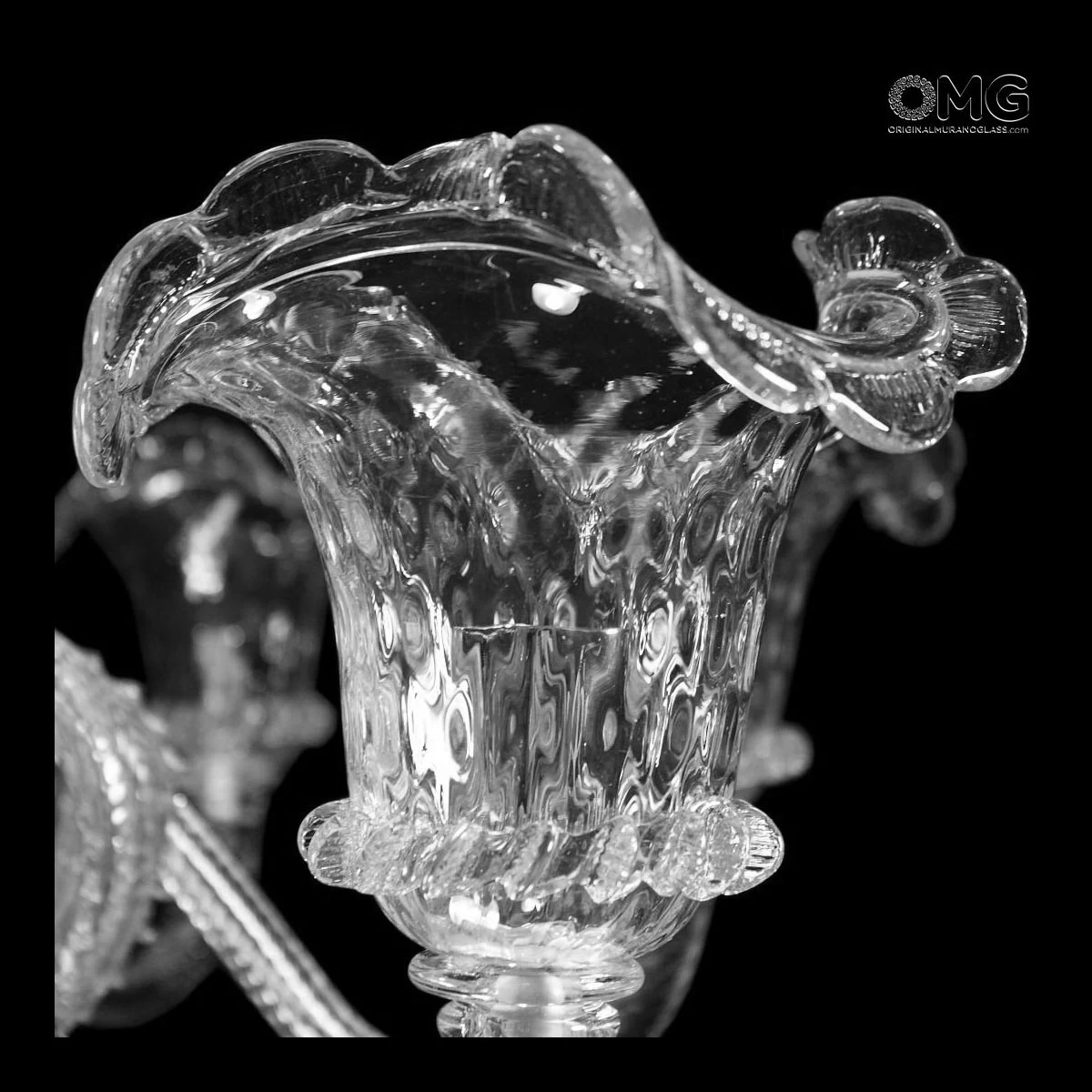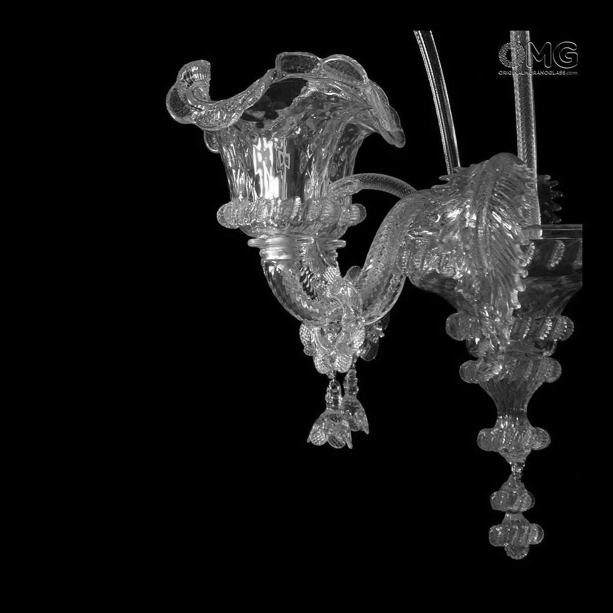 Two lights wall lamp in clear glass crystal. It is handmade according to the old Murano glass tradition, handcrafted in blown glass.