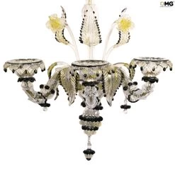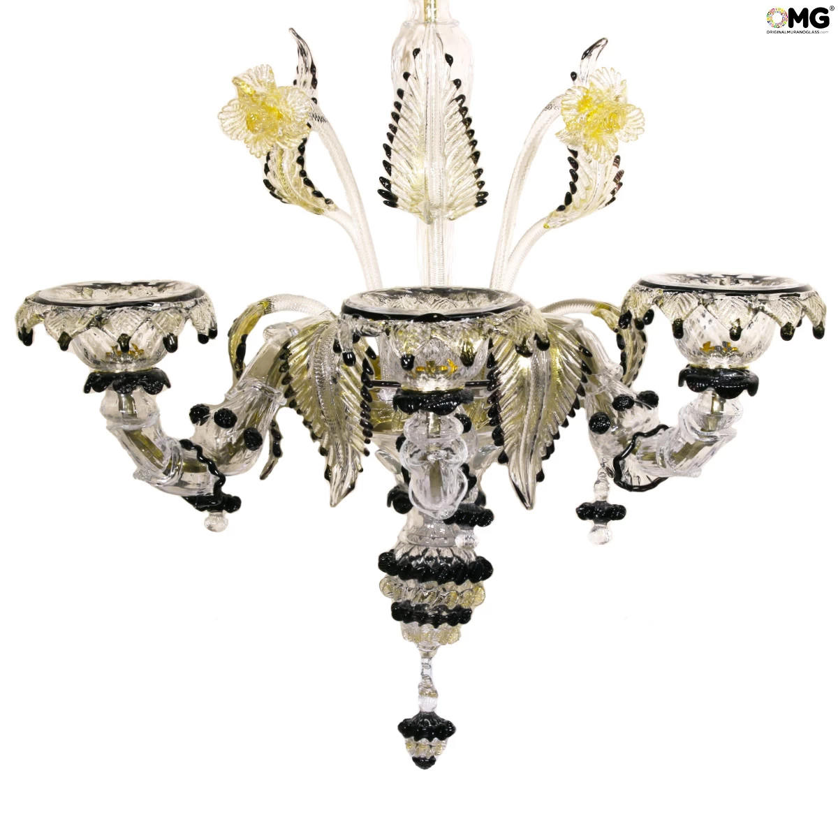 five lights wall lamp in clear glass and gold 24kt details. It is handmade according to the old Murano glass tradition, handcrafted in blown glass.