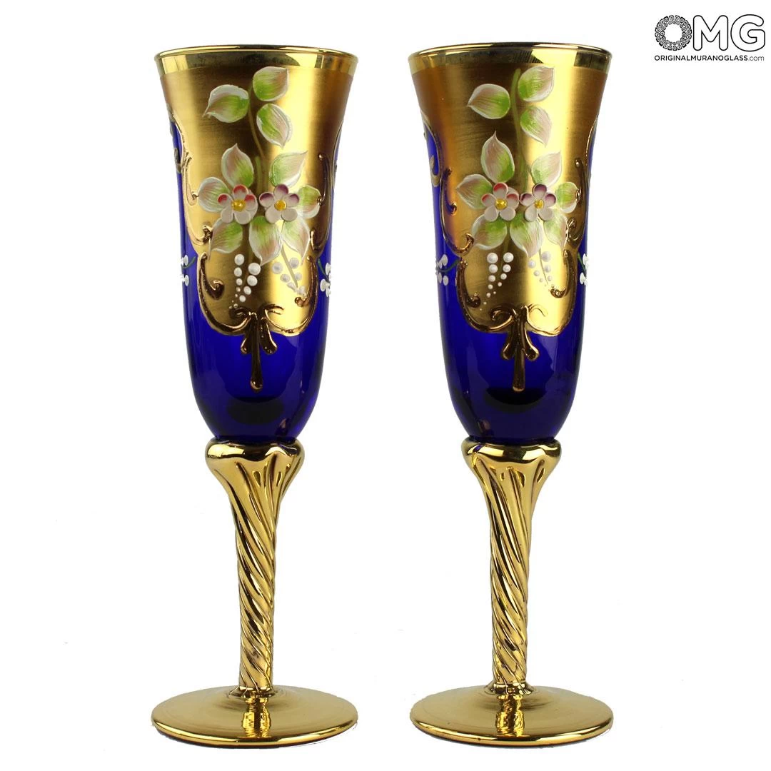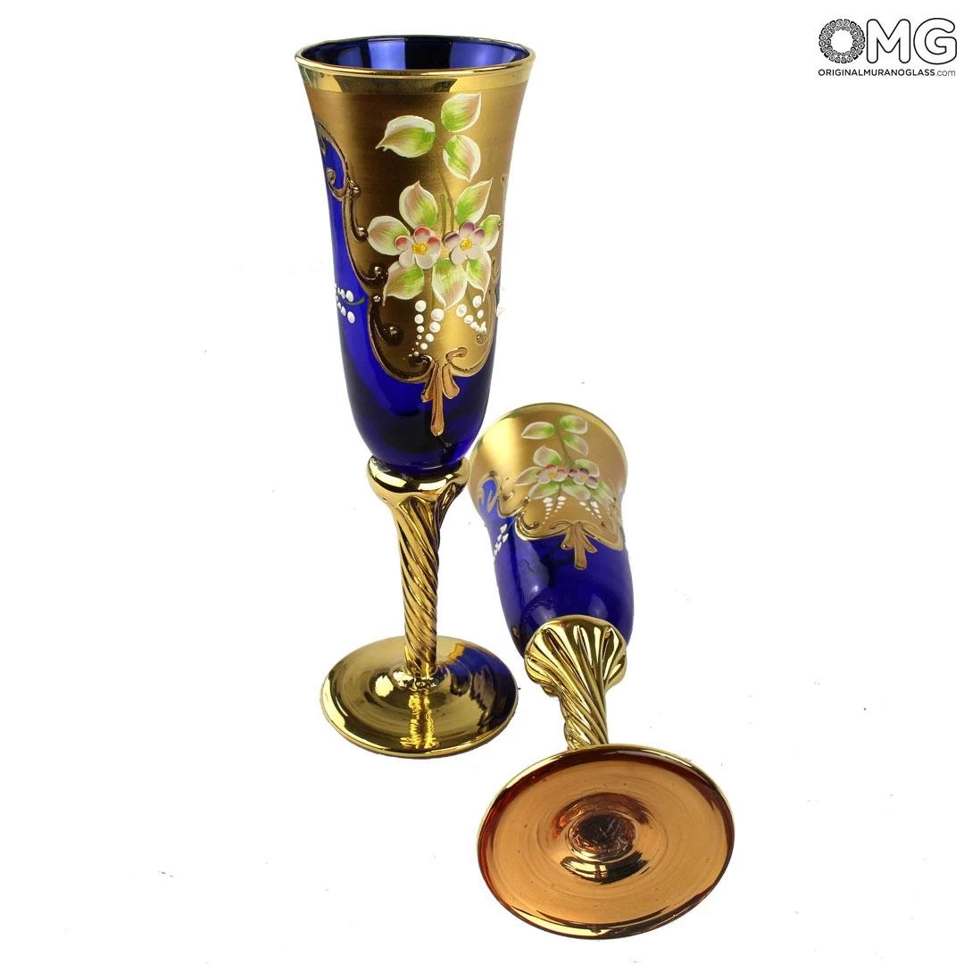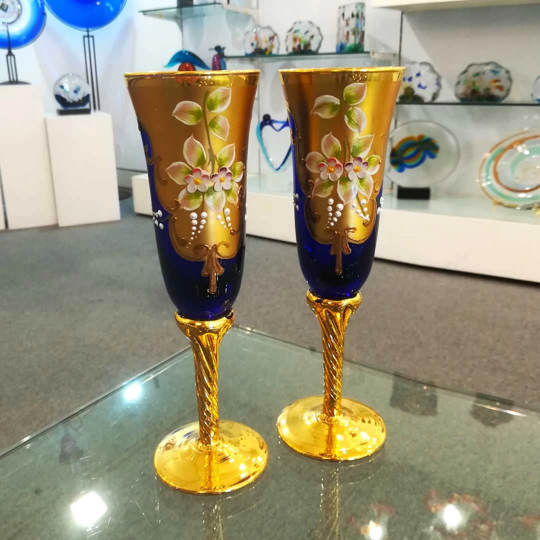 Those glassware of high quality are handmade one by one, blown and painted by free hand by our italian artisans with gold and enamels.
