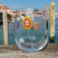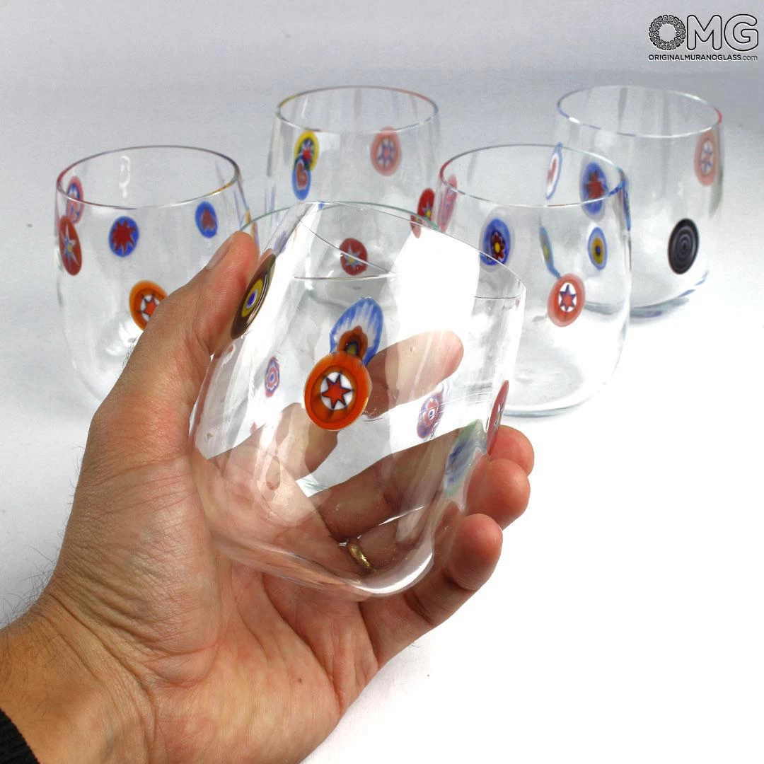 Cool set of 6 glasses made with the technique of glass blowing and millefiori murrine.Â