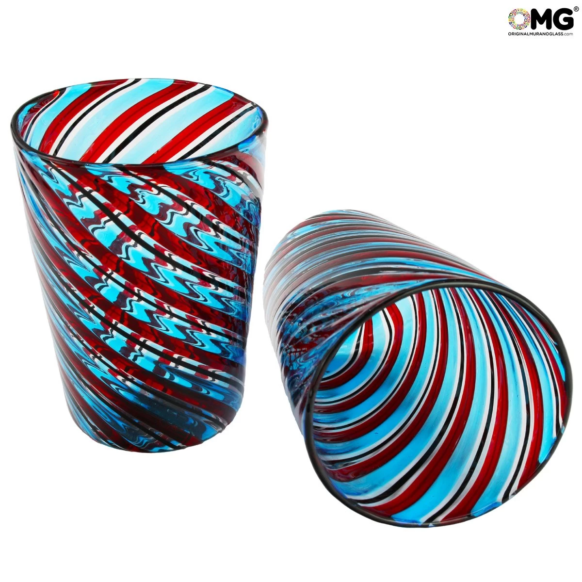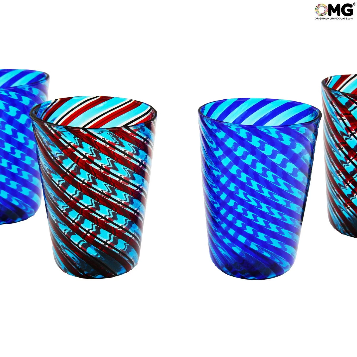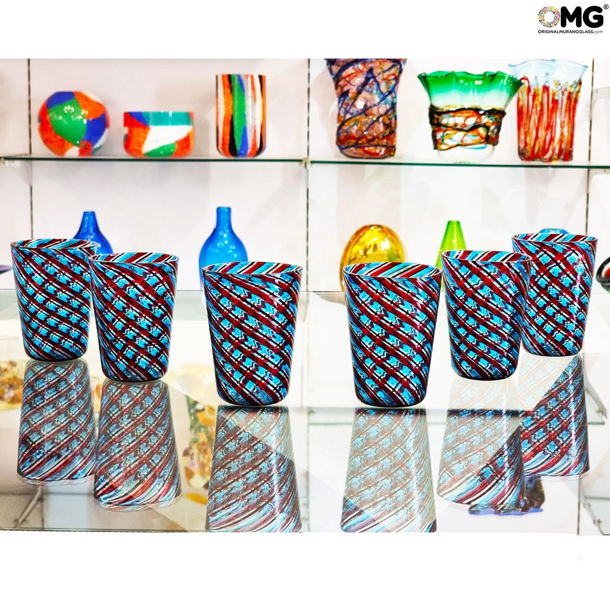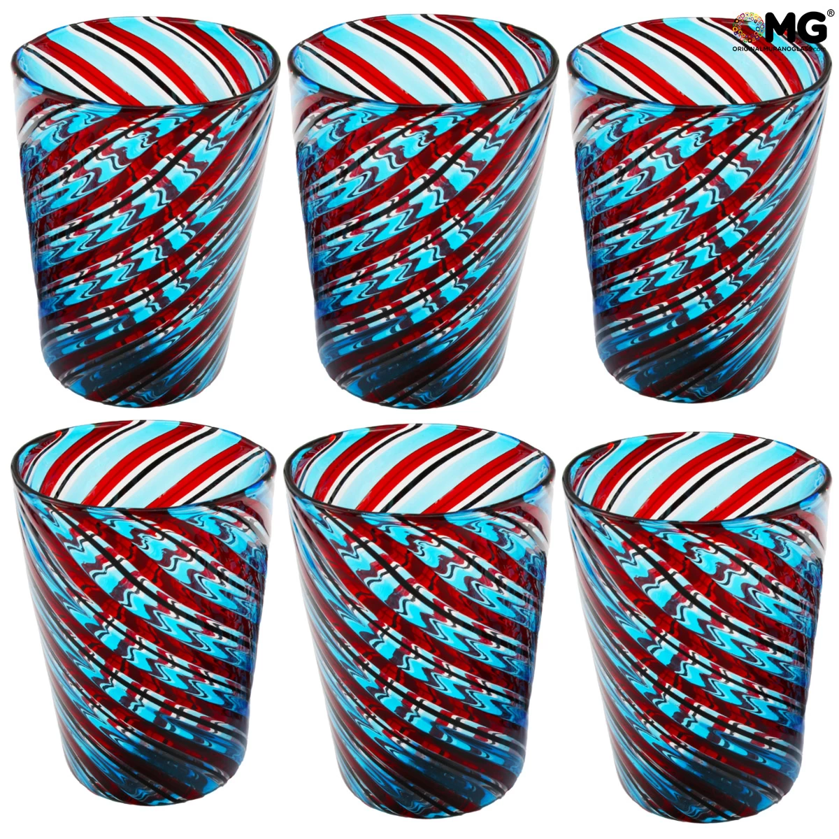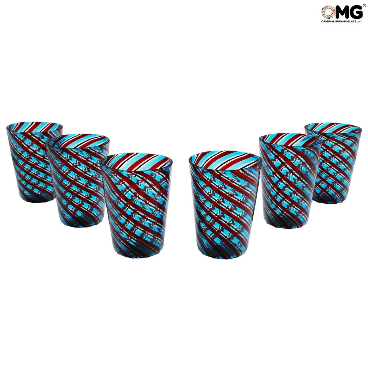 Make your table more precious with this set of 6 glasses, blown made in Original Murano Glass. The glasses are twisted by the glass master to give exclusive elegant glass effect on the surface.