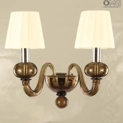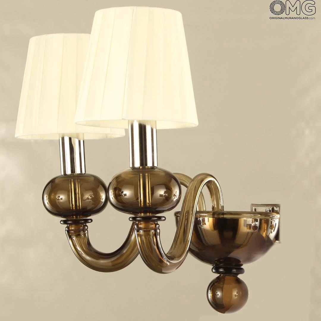 Luxury Wall lamp sconce in fume glass color blown with smooth lampshades and silver finitures.Â