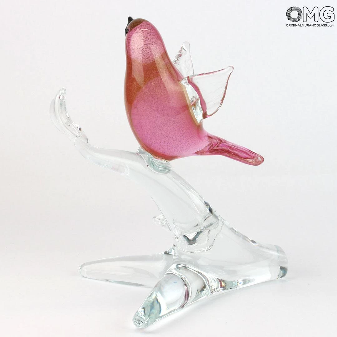 Branch with bird in Murano glass totally hand made and signed by the master. Another lovely piece of our birds sculptures collection, the widest collection you can find on line and in Murano.