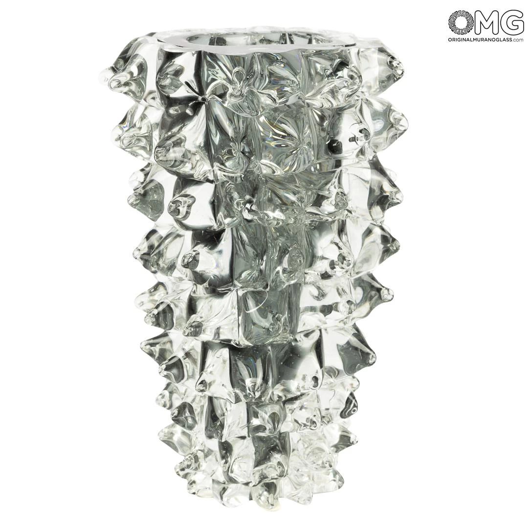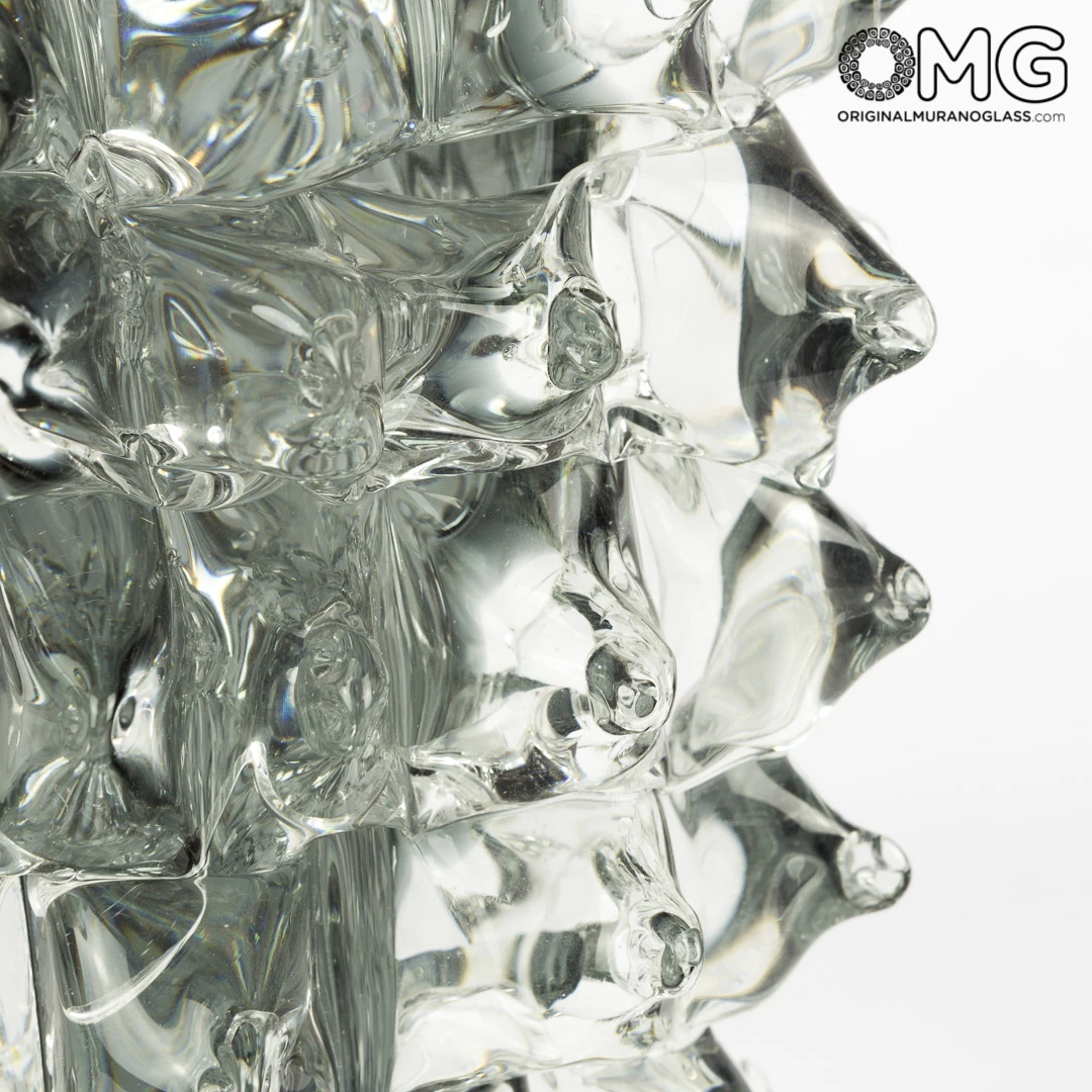 Handmade blown vase centerpiece in Murano glass worked with glass blowing and sommerso technique, characterized by a special surface texture.