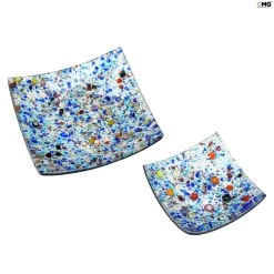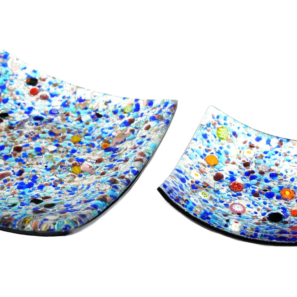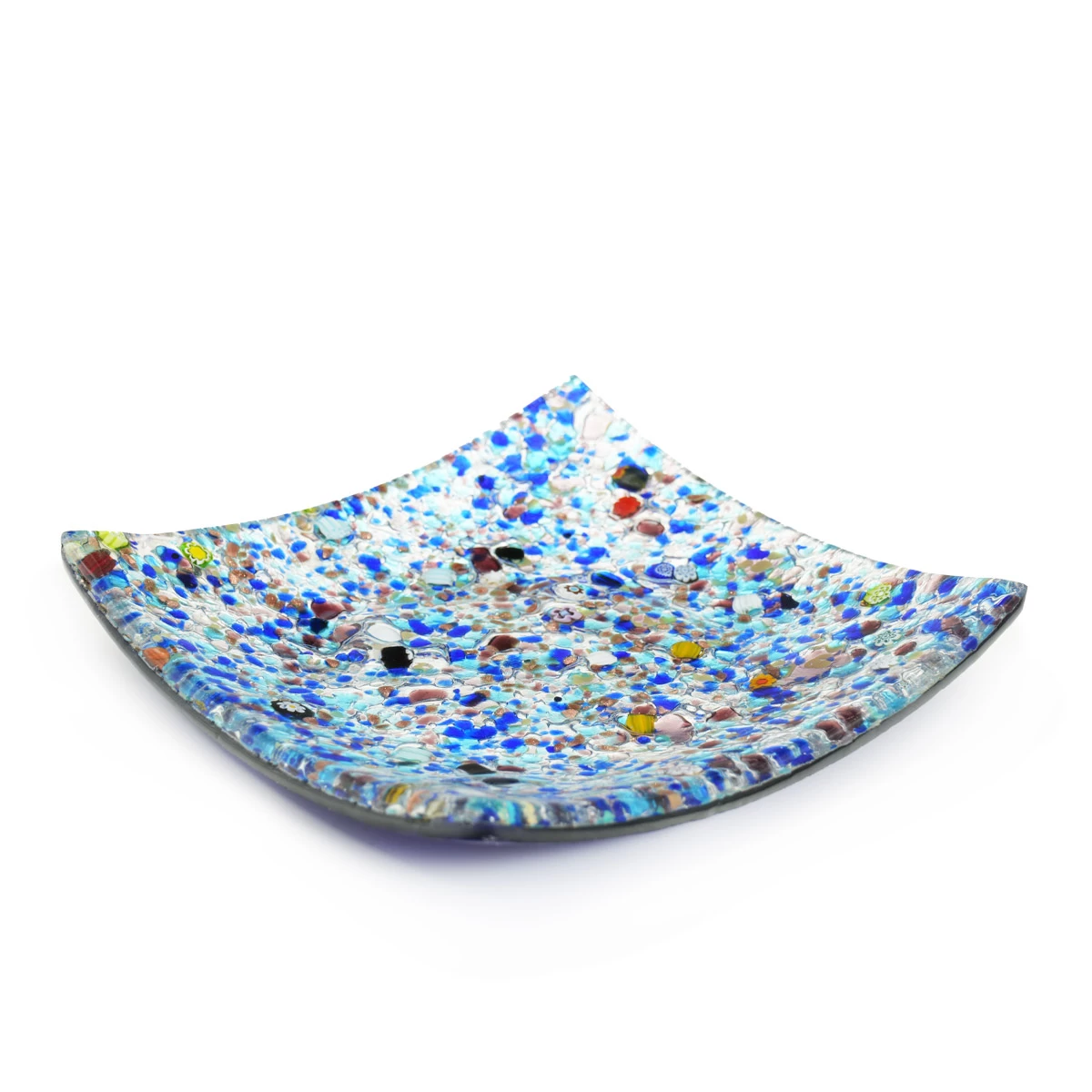 Colorful plate handmade with the tecnique of glass fusing in Murano glass with murrine. The plate is in different sizes available, centerpiece or empty pockets. Unique and handmade. For special events gifts and big quantity orders please contact us.