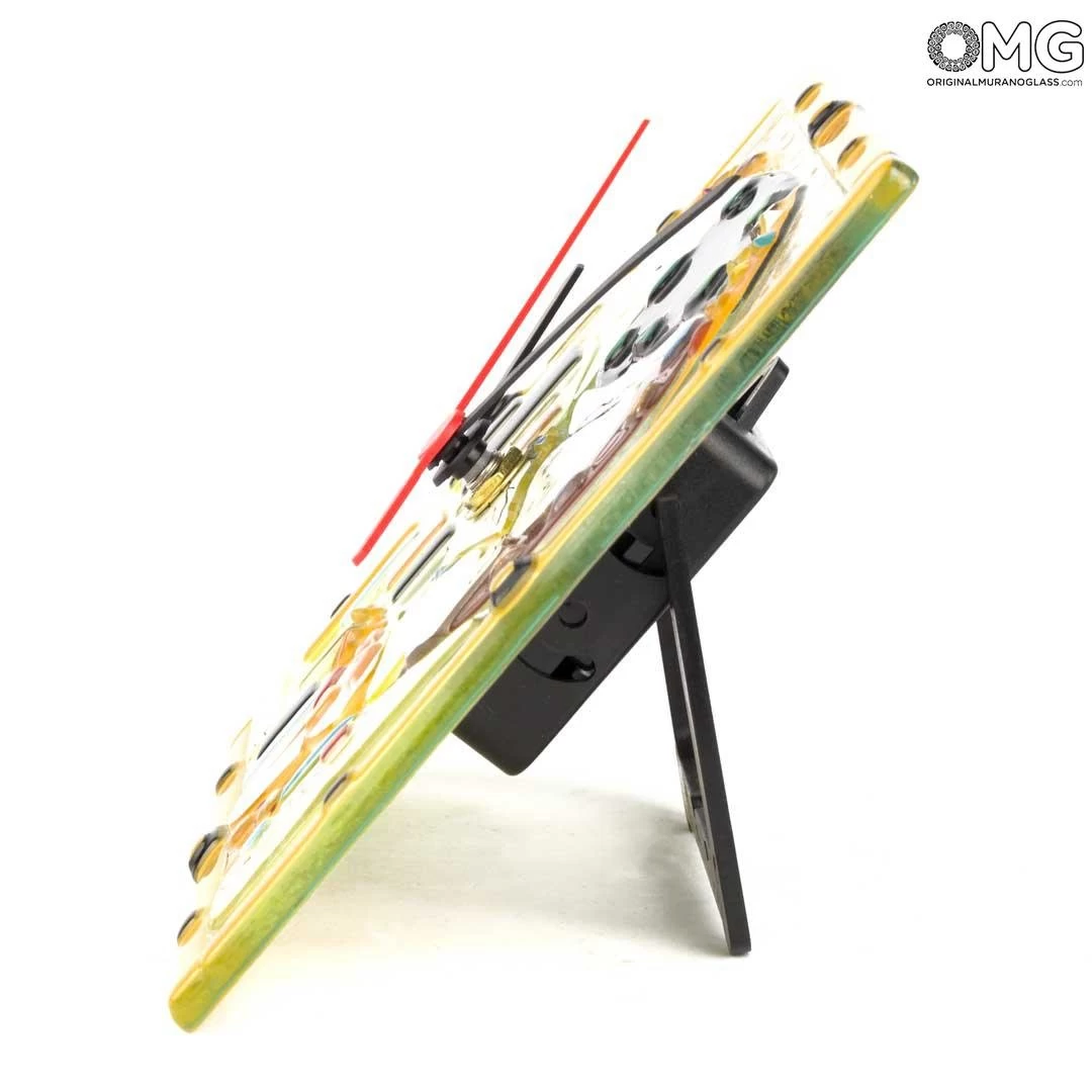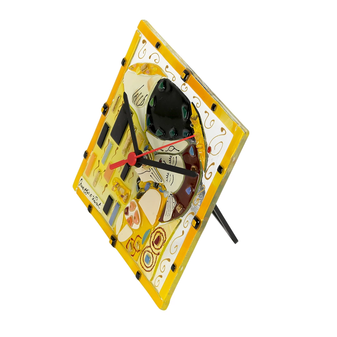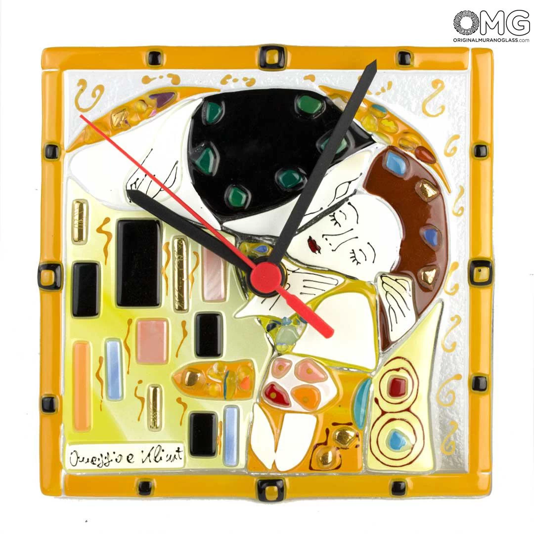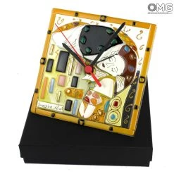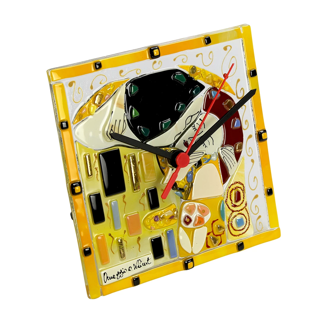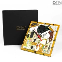 This elegant clock inspired by the Klimt’s Kiss, is handmade with the technique of glass fusing putting togheter each single piece.