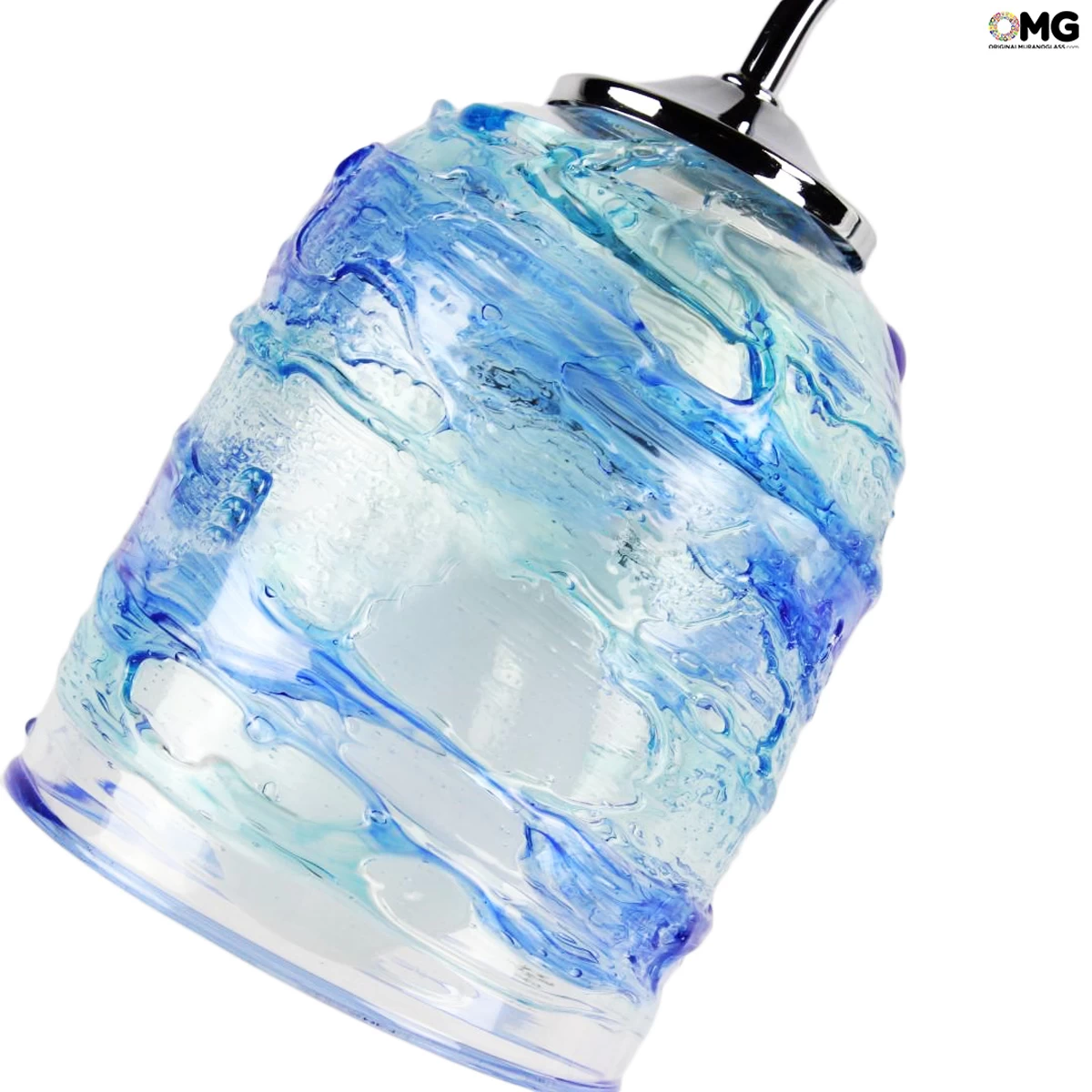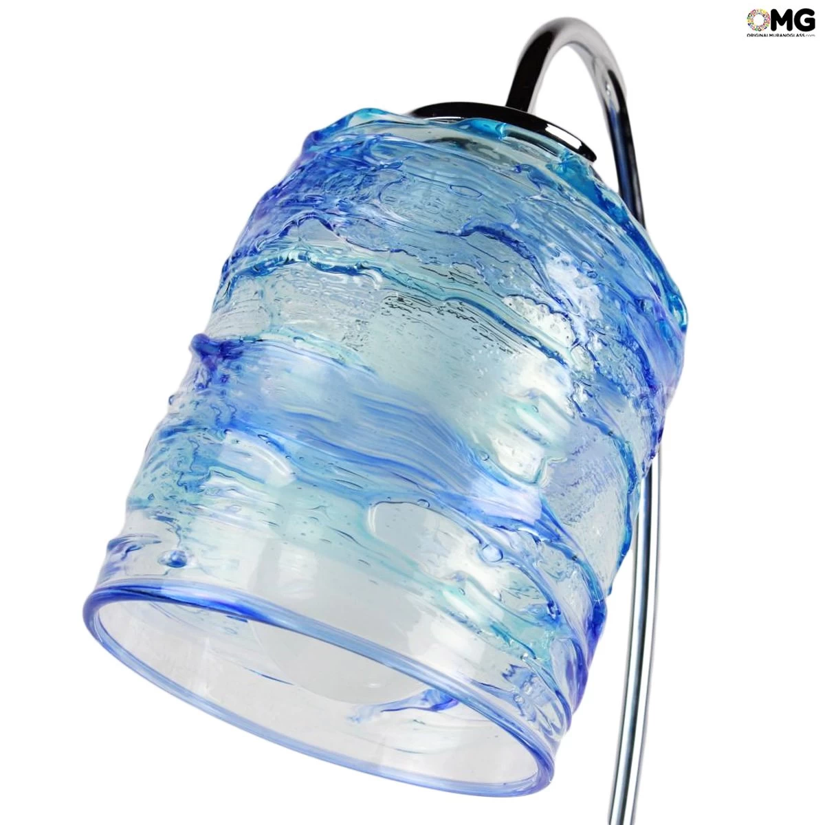This table lamp is handemade with sbruffi technique and blowed by our glass master. The color are blu and crystal with cylinder shape. The good is signed by the artist, look at the photo description. Choose the metal lamp structure frame: cromo or gold