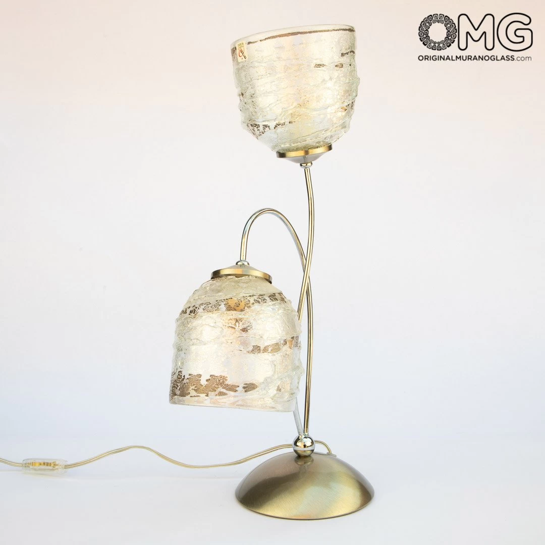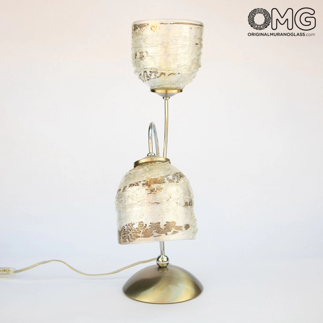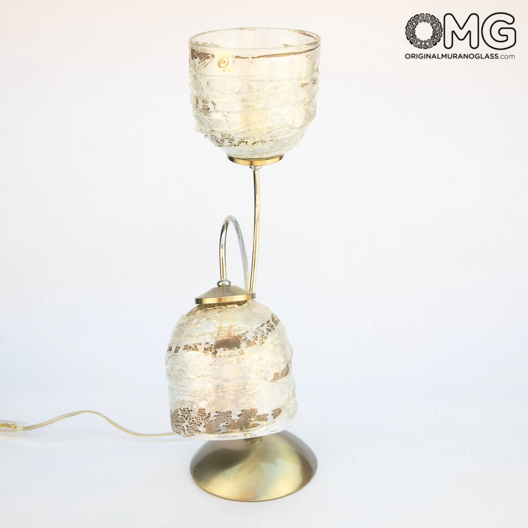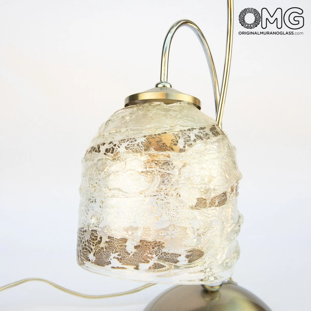 This table lamp is handemade with the glass blowing technique and the sbruffy style technique. Embellished with real silver leaf.