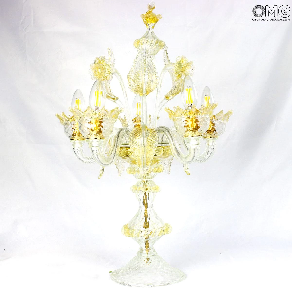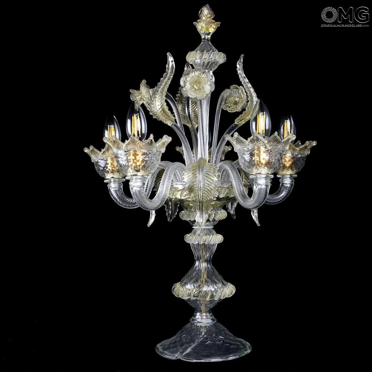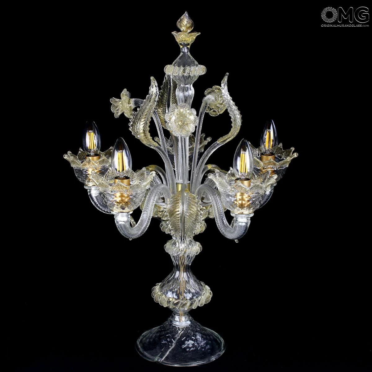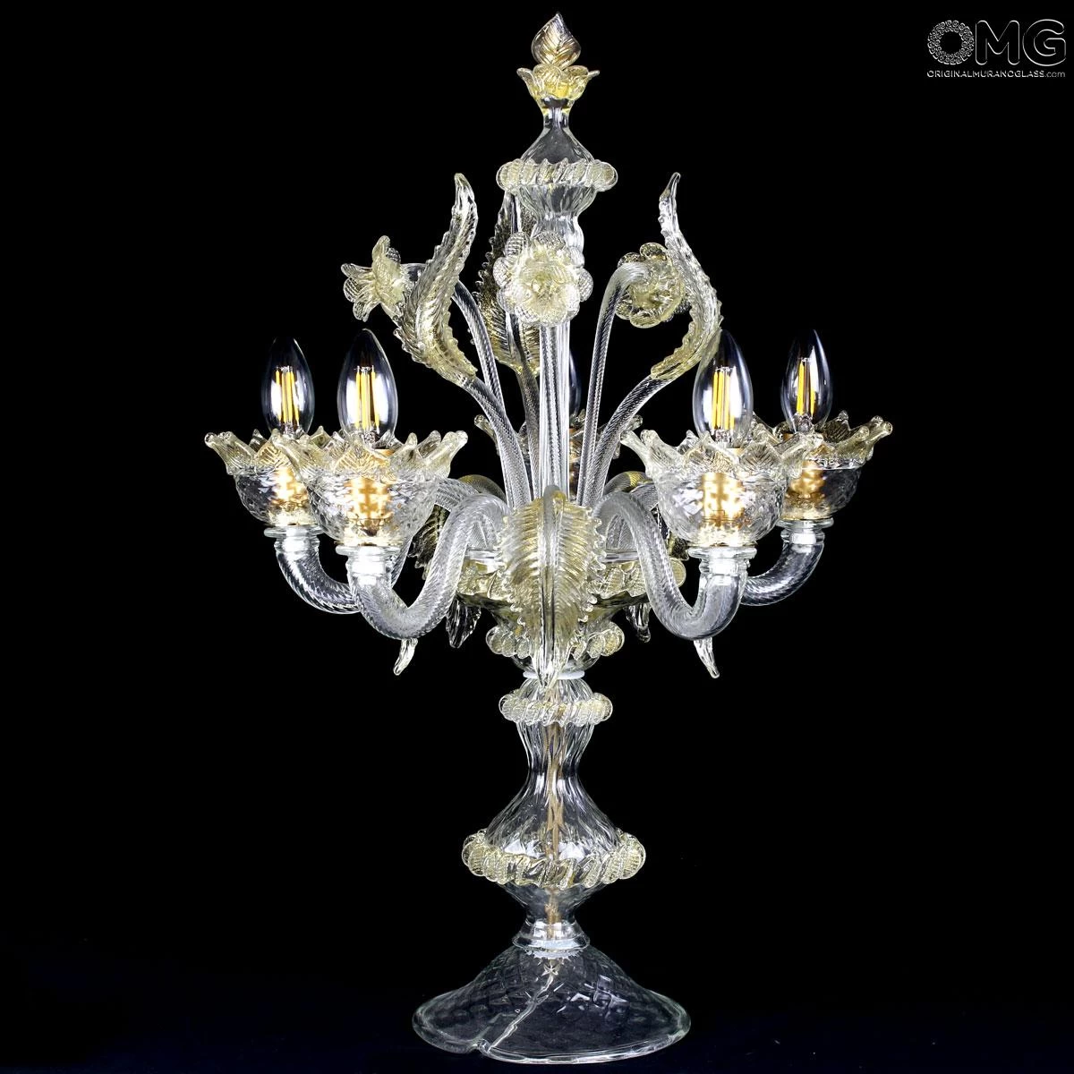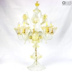 Table lamp handmade according with the old Murano glass tradition, handcrafted in blown glass.