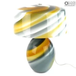 This table lamp is handemade with glass blowing technique by our glass master. The color are in amber and grey nuance with a cylinder shape.Â
