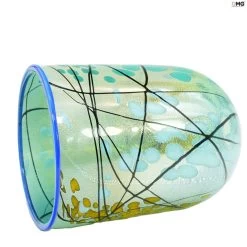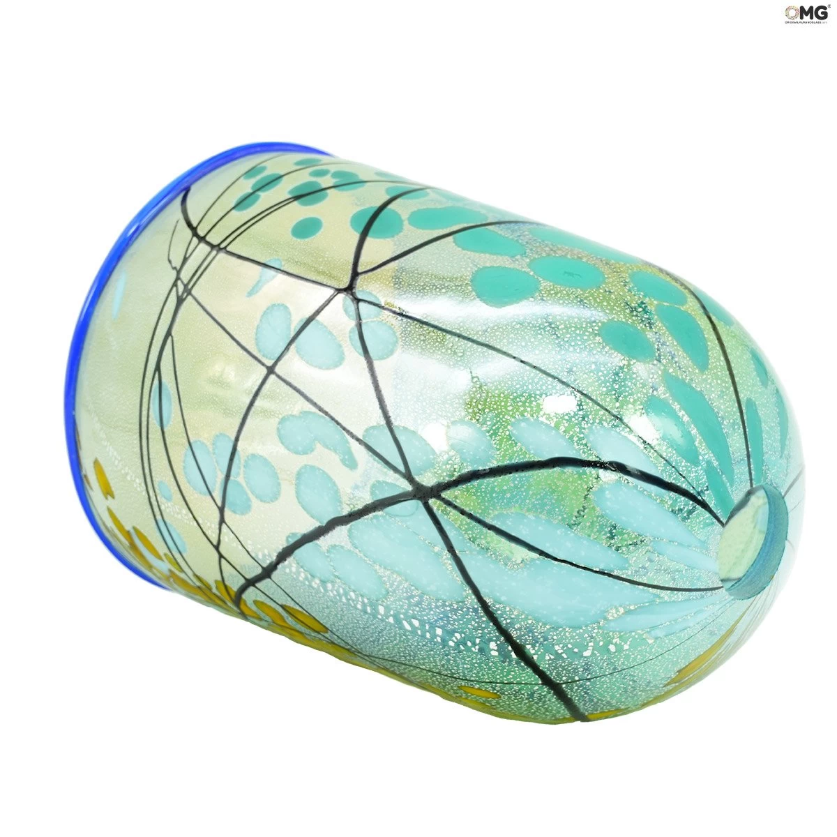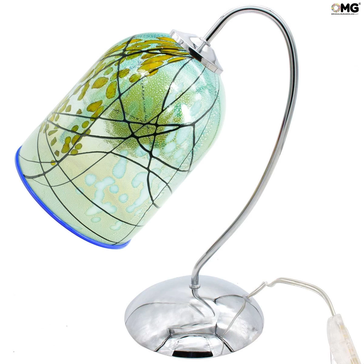 Murano glass table lamp handmade in original venetian glass, 1 light, with cup holder in artistic glass canes and silver. The cup is very elegant and colorful. this Murano glass light will enrich your desk and table with unique light colors.