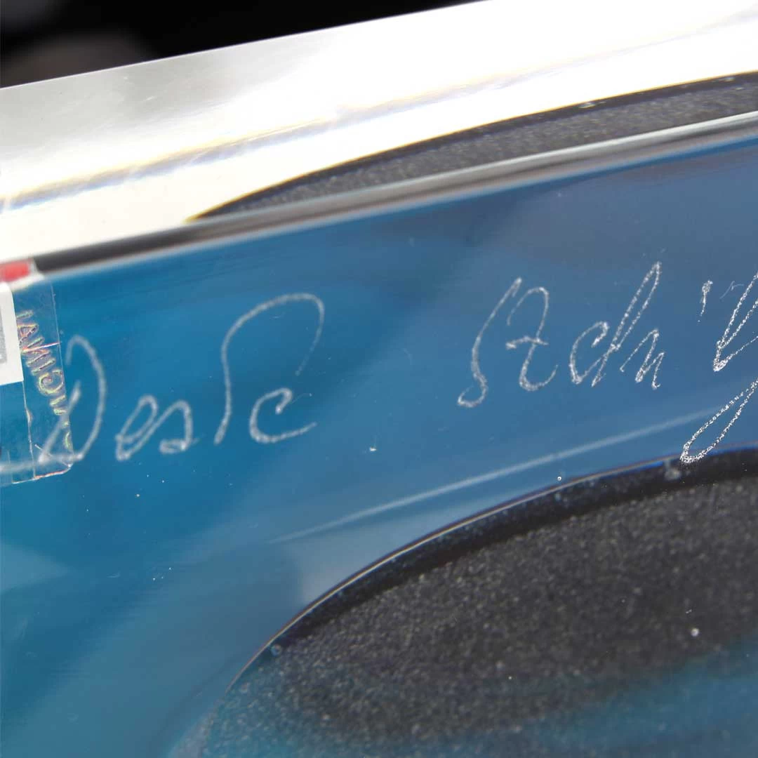 Sculpture that represents the Eye of Divinity floating on a solid base. Bright colors and great dimensions make it perfect for your modern home furniture. The artwork is unique and signed by the glass master.