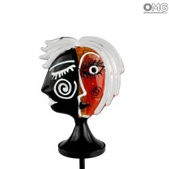 Abstract sculpture with modern design, the style is reminiscent of the paintings of the great artist Picasso, surrealism has been reinterpreted in punk and pop style. This original Murano glass sculpture is made freehand with lamp working technique. Abstract subject – modern. Shades of colors and strong visual impact.
