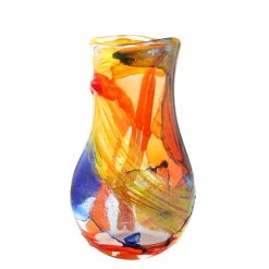 Gorgeous abstract threads of color wrap the bottom of this shimmering blue vase, bringing to life the unique vision of the artist inspired by a mix of art trends from Art Nouveau of Klimt to Abstract Expressionism of Kandinsky. Wavy, almost fluid form of the vase completes the vision and brings elegant touch of Venetian art to the design. Enjoy this beautiful vase in your home, or give it as a fine rare gift for a momentous occasion to the special people in your life. The vase is very well packaged to avoid damage . The vase is a unique piece of art made by hand, hence some variations of colors and patterns inside glass are possible and serve as additional assurance of the authenticity of this Murano Glass Venetian vase. Signed by the master