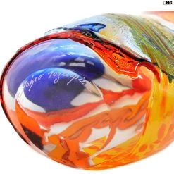 This gorgeous contemporary Murano Glass Vase is an example of abstract art at its best, created by top-notch Venetian masters from a potent mix of passion, talent, and unmatched skill from decades of working hot glass.