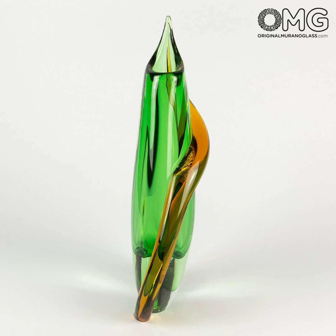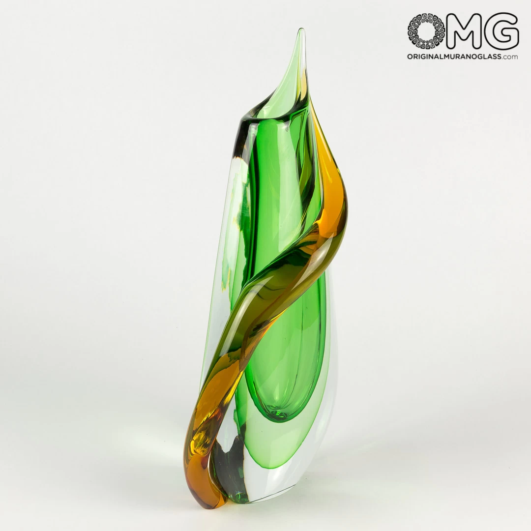 Luxury handmade vase with the famouse technique of glass Sommerso, realized in Murano Glass. A first mass of blue green is covered with a second mass of pale green and with a third of crystal. Everything is then blown and shaped.