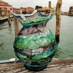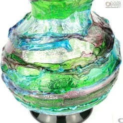 Handmade blown colored vase in colored glass and with silver.
